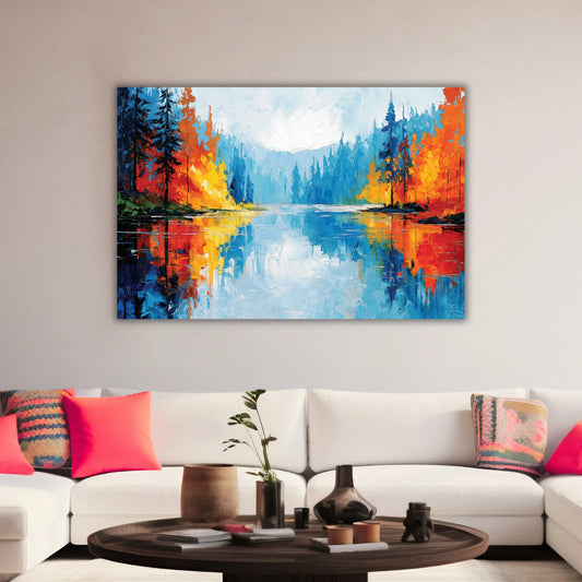 Abstract Landscape Painting| Modern Abstract Canvas Art | Forest Reflection Art | Colorful Nature Painting
