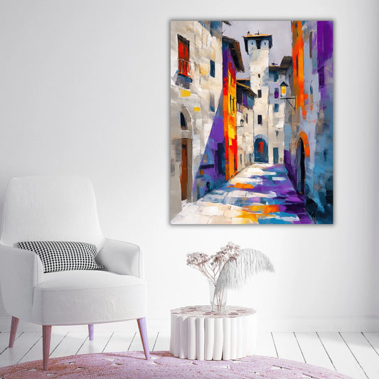 Abstract Canvas Painting, Italian Building Painting, Abstract Landscape Art| Italian City Street Painting