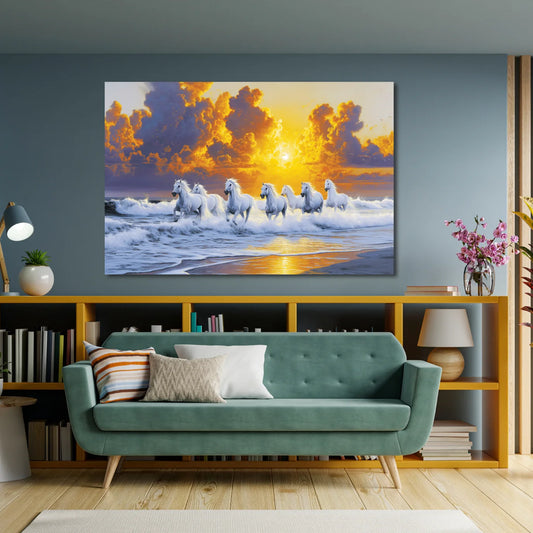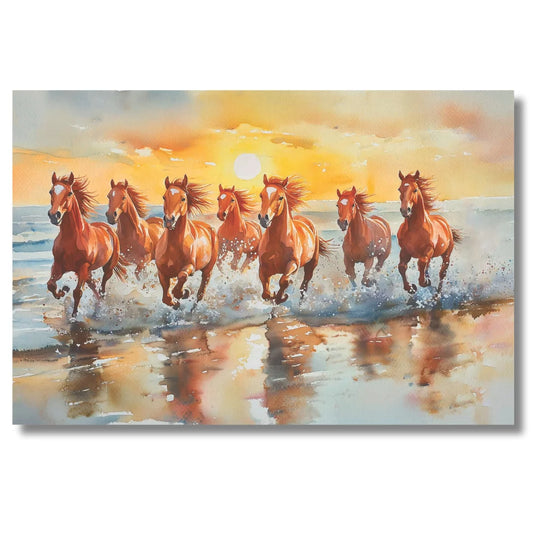 7 Running Horses with Rising Sun Canvas Painting as Per Vastu for Living Room
