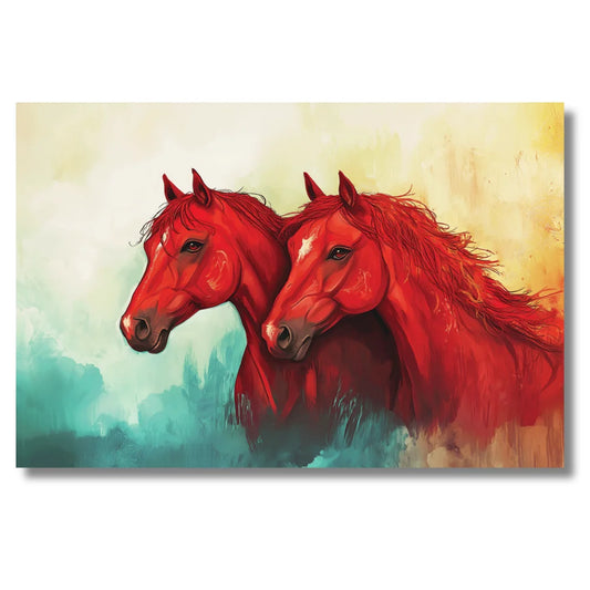 2 Red Horse Painting on Wall Perfect Vastu Painting for Living Room and Wall Art Decor
