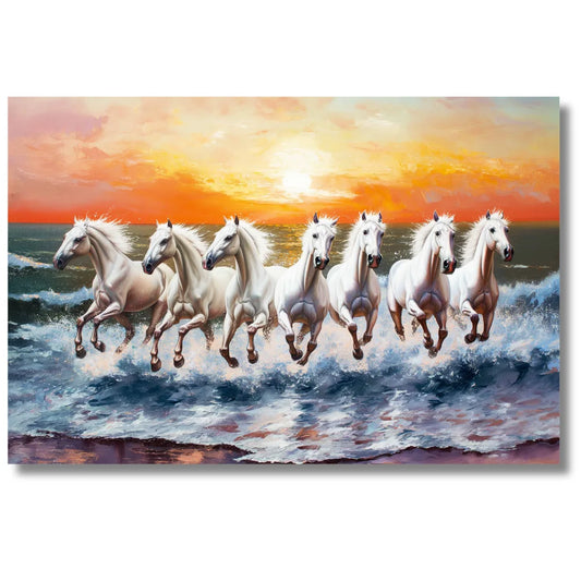 Surya Rath 7 Horse Canvas Painting for Living Room Perfect for Vastu Wall Art Decor