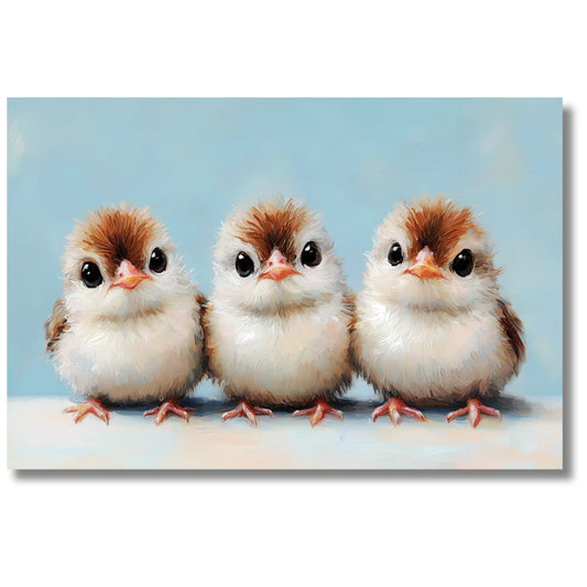 Three Cute Bird Painting on Canvas for Wall Art Decoration