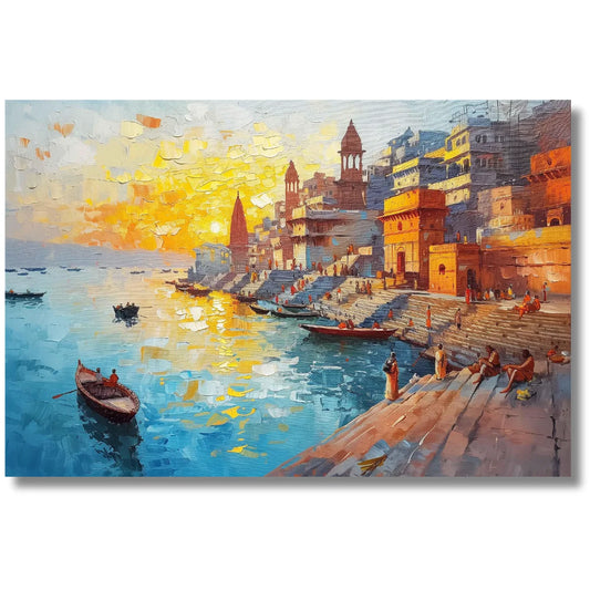 Canvas Ganga Ghat Varanasi Painting for Living Room Perfect for Vastu Shastra