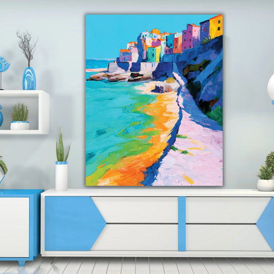 Colorful Seashore Painting| Abstract Canvas Painting| Modern Art| Abstract Village Painting