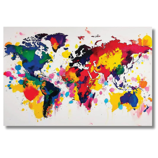 Colourful World Map Painting on Canvas Best for Wall Decoration