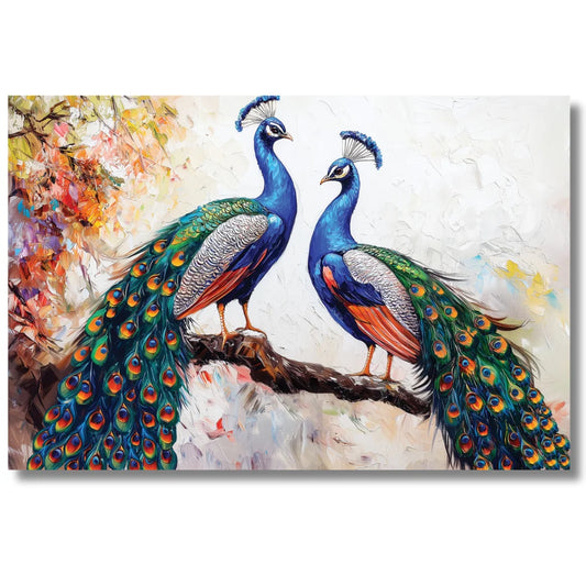 Double Peacock Canvas Painting for Living Room Wall Art and Home Decoration