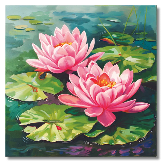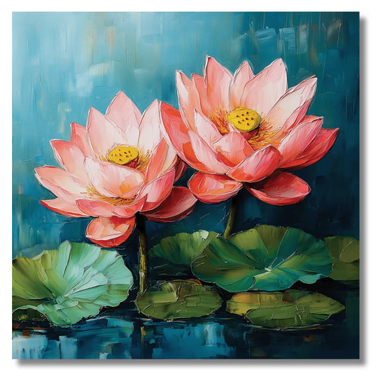 Lotus Canvas Painting for Living Room Square Big Size Vastu Wall Art Painting