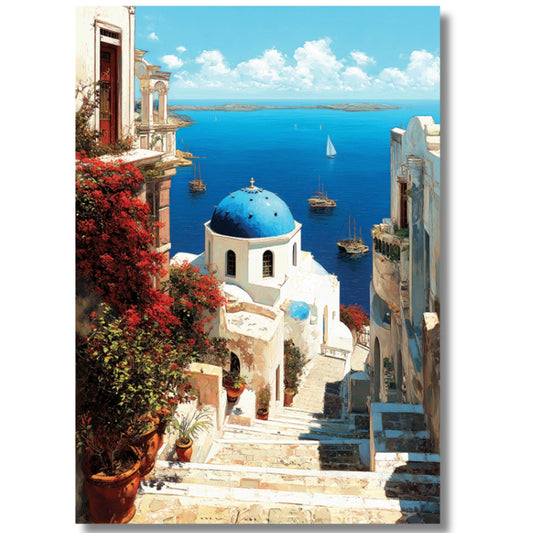 Modern Art Painting| Santorini Painting on Canvas| Painting for Living Room| Canvas Wall Art