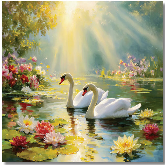 Swan Painting / White Swan Painting / Swan Couple Painting/ Swan Wall Painting for Living Room